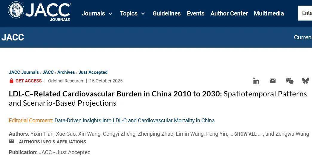 “坏胆固醇”水平持续攀升,成国人“隐形血管杀手”2025年10月,中国医学科学院阜外医院王增武教授团队在国际权威期刊《美国心脏病学会杂志》(JACC)发表重磅研究:2010-2020年,我国成年人“坏胆固醇”水平显著上升,与之相关的心血管死亡也大幅增加。